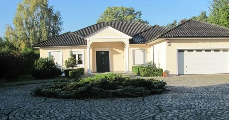 - Biała elewacja w połączeniu z białymi oknami optycznie powiększa przestrzeń.